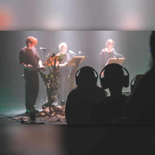 Sur un texte d’une sensibilité à fleur de peau, nous voilà plongé·es, casqué·es, en totale immersion tant individuelle que collective. Au-dedans la forêt nous raconte l’histoire de trois enfants sans parents, livrés à eux-mêmes mais déterminés et soudés. Réfugiés dans une forêt mystérieuse et interdite pour fuir le monde déboussolé qui les menace, ils vivent au milieu des arbres et des animaux qui, tout à la fois, les effraient et les fascinent. Au plateau, quatre pupitres arborés, quatre lecteurs et lectrices, quatre micros et un travail sonore d’une rare précision vous feront voyager au cœur des mots, des ambiances et de la poésie.